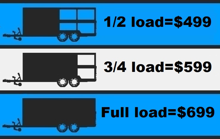Our all inclusive price includes our two person team coming out and loading everything up for you, clean up and all disposal fees. We use a 15 yard dumpster